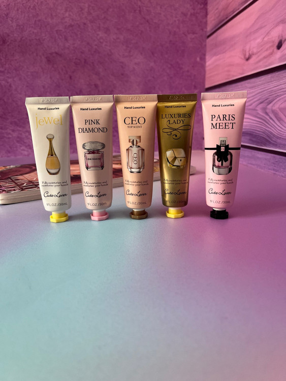پکیج کرم دست ادکلنی شامل 5 عدد کرم دست با رایحه های ادکلن های معروف متفاوت